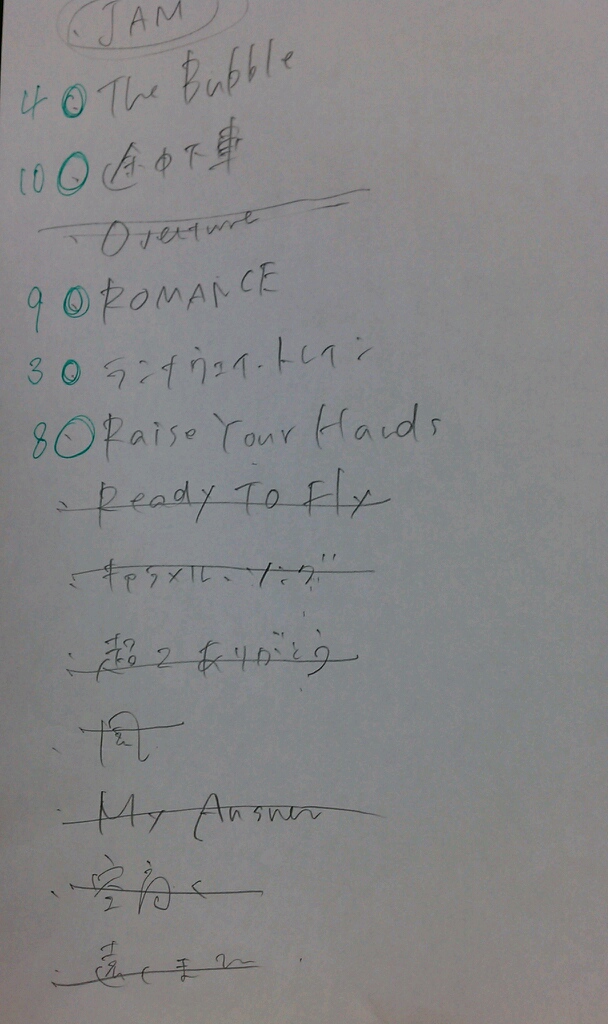 メモを取る手も震えてどうしよう書けない!となる予定のセットリスト。