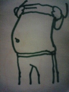 ズボンの上に肉がのっていた…とうい目撃情報を入手したものの、まさか絵に描いてくれるかたがいようとは思いませんでした(笑)。なんてチャーミングな腹だ!