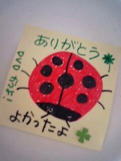 私は結構まじめに書いたつもりですが、連れの描いたてんとう虫が気持ち悪くて、