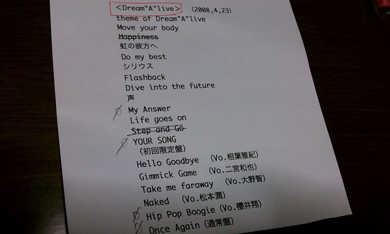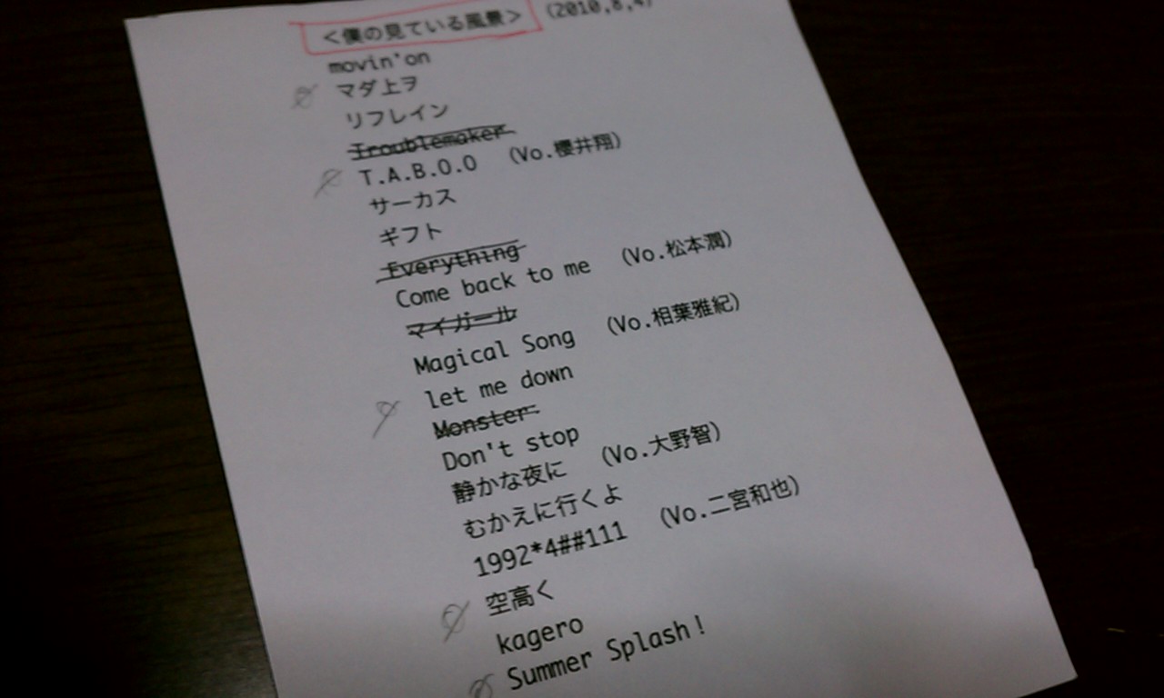5×10のパンフレットのセトリ部分を見ながら、曲が何回使われたかを数えたり…夏休みの自由研究かというような行動まで始める始末。